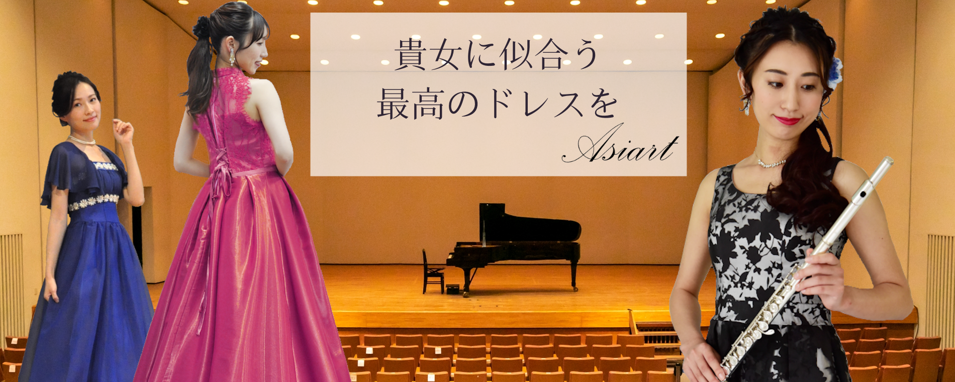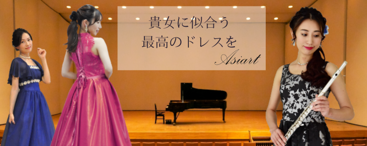 演奏会ドレスアジアートでは華やかでエレガントなステージにピッタリのロングドレスが多数用意しております。