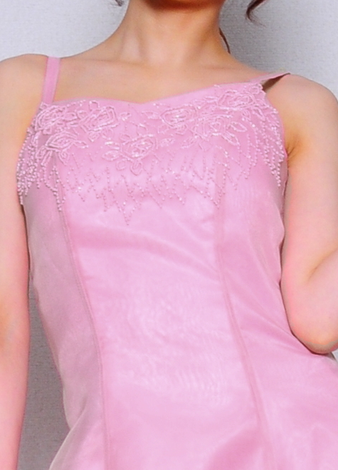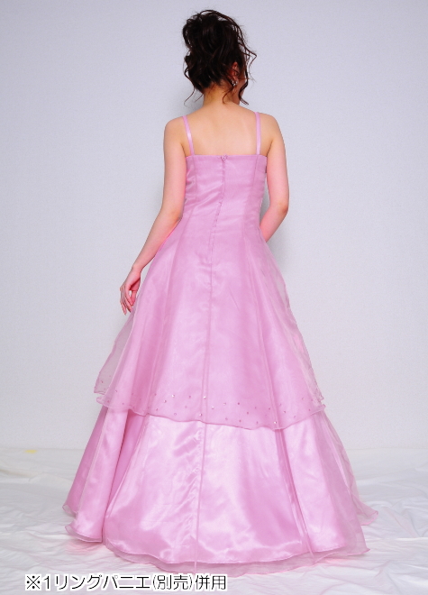 シャーベットのような軽~く、優しいカラードレス、3色入庫いたしました。今年のトレンドカラーは鮮やかさを控えめにしたパステルカラー。お菓子屋さんに並ぶような可愛いお色です。素材は透明感のあるオーガンジーを使用。光沢のないタイプのオーガンジーですので、ドレスのイメージを一層ソフトな印象にしてくれています。2段スカートの上段にはスパンコールが点々と…胸元にはビーズ刺繍が立体的に浮かぶ手の込んだドレスです。パニエとの相性も良く、アジアートの1リングパニエがお勧め!!こちらのお色は【ピーチ】。上品で可愛いピンクです。