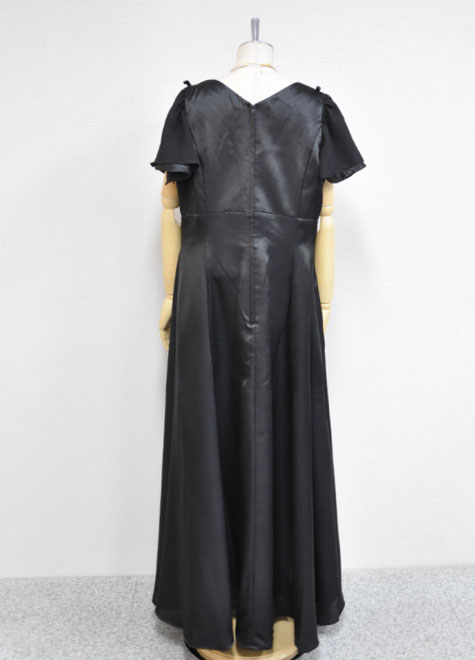ドレス専門店。黒の演奏会ドレス、ステージドレス小柄サイズな方向け、演奏会用大きいサイズドレス、袖ありロングドレスも。