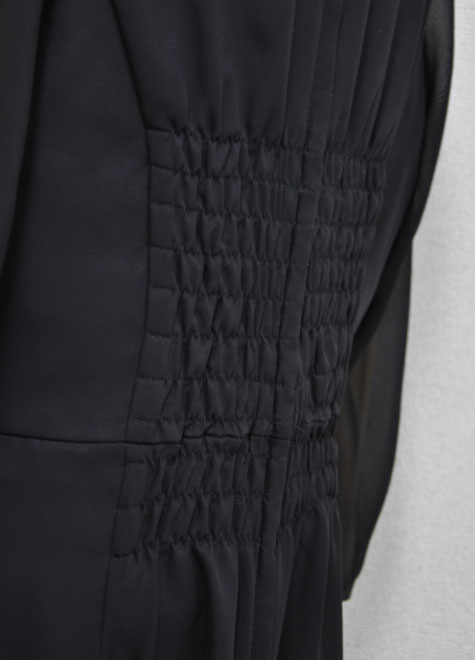 肌馴染みの良いシフォン派のあなたにお勧めな長袖ドレス。重ね着風な胸元のドレープもシフォン素材ならでは。柔らかく女性らしい素材です。