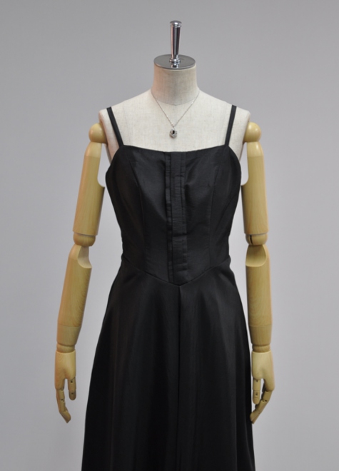 こちらはシャリ感のあるタフタ素材に背筋が伸びるようなストラップドレス。シンプルなデザインでも素敵に感じていただけるよう見劣りしない素材をきちんと選びました。「大人ドレス」と紹介していますが、すっきりした雰囲気がお好きであれば年齢問わず着ていただけます。