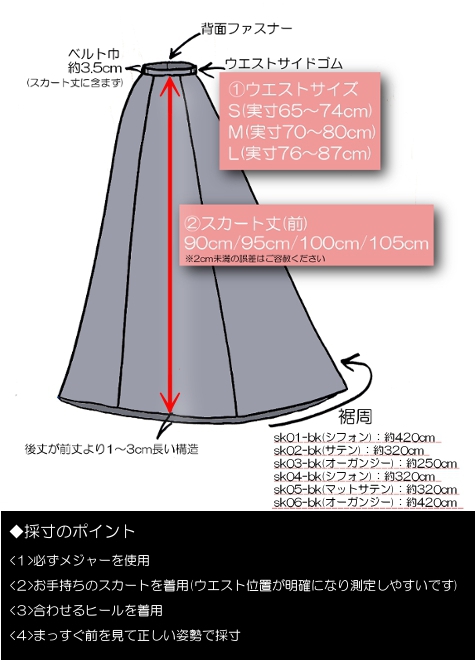 従来のシフォンスカートsk01-bkより軽やかな分量になってお手入れも楽チンになりました。ウエスト部分をサテンからバックサテンに改良しスカートとの一体感を重視。より素敵になった音楽家マストアイテムをお見逃しなく!