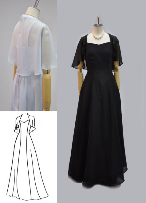 ドレス専門店。黒の演奏会ドレス、ステージドレス小柄サイズな方向け、演奏会用大きいサイズドレス、袖ありロングドレスも。