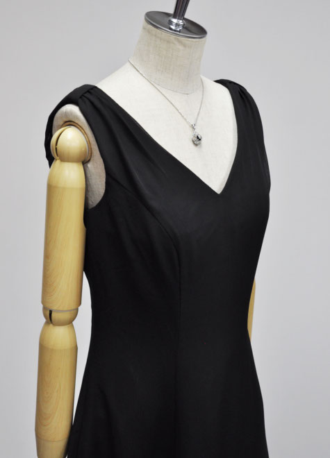 肩先にデザインがあるだけの超シンプルなステージドレス。シンプルなドレスほど縫製や構造の真面目さが反映するものなので、決して簡単には作れません。…ですが、着る方にはストレスなく、気軽に、時にはシフォンボレロなんかをセットにしてお使いいただければ幸い…そんな思いでお値段設定いたしております。オケ用や伴奏用に重宝しそうなシフォンドレスを是非お試しください♪