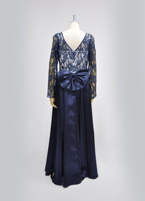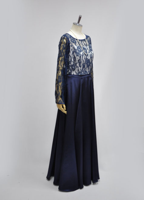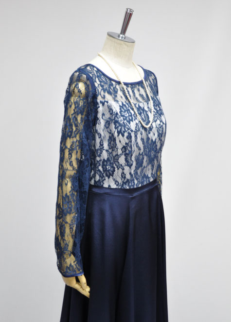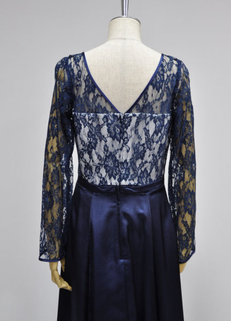 大人の女性にレースの透け感がエレガントな長袖ドレス。重苦しいイメージになりがちな長袖もレース素材だと軽やかな印象です。上半身の裏地には白色サテンを使用し、レースの柄が浮き出る配色になりました。襟周りとお袖はレース2枚のため肌が透けますが、品の良さを保った適度な透け感です♪背面のリボンは簡単に取り外せます。こちらの現品は身長+ヒールの合計寸=160cmの方にお勧めな【R丈】。サイズが合わない方はセミオーダーやお直しもご検討ください。