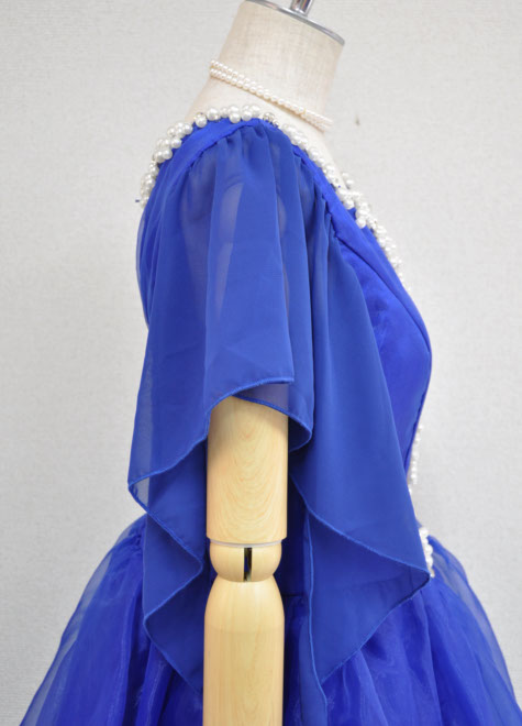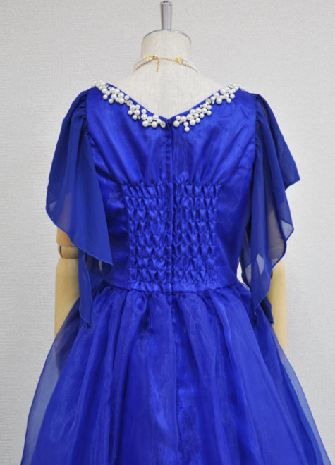 お袖があって、華やかで、着易い。3拍子揃った演奏用ドレスの登場です。今までのお袖付ドレスは、伴奏用やセカンド用など…控えめな出番に合わせた控えめなデザインが多かったのですが、主役用としてのお袖付ドレスのリクエストが多いため、まずはベーシックなデザインでご用意いたしました。着る方の体型や雰囲気を比較的選ばないお袖や襟開きのデザイン。カラーも何着あっても困らないブルーとレッドの2色をご用意。更に背面ギャザー仕様でメリット盛りだくさんですよ♪お写真は1リングパニエを併用。ドレス本体にもチュールを縫い付けており、単体のイメージは最後の画像を参考になさってください。
