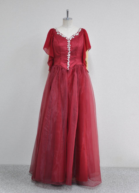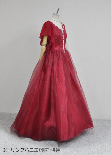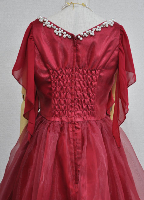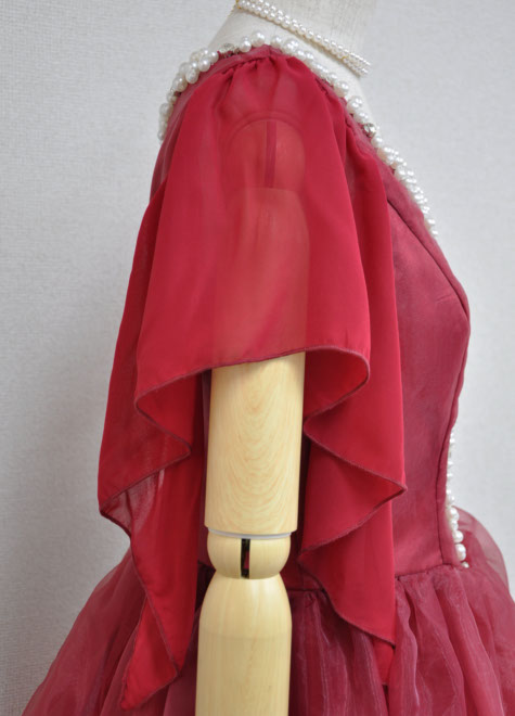 お袖があって、華やかで、着易い。3拍子揃った演奏用ドレスの登場です。今までのお袖付ドレスは、伴奏用やセカンド用など…控えめな出番に合わせた控えめなデザインが多かったのですが、主役用としてのお袖付ドレスのリクエストが多いため、まずはベーシックなデザインでご用意いたしました。着る方の体型や雰囲気を比較的選ばないお袖や襟開きのデザイン。カラーも何着あっても困らないブルーとレッドの2色をご用意。更に背面ギャザー仕様でメリット盛りだくさんですよ♪お写真は1リングパニエを併用。ドレス本体にもチュールを縫い付けており、単体のイメージは最後の画像を参考になさってください。