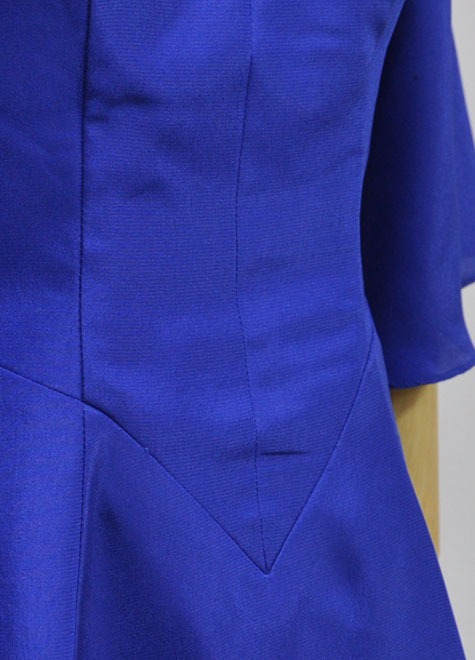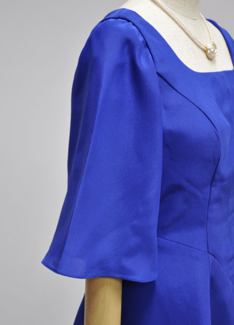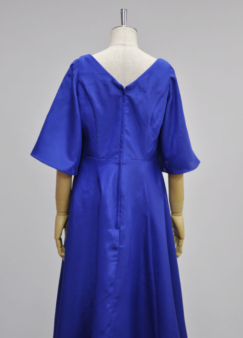 肘まで隠れるお袖と、安定感あるフレアースカートの組み合わせで存在感があります。スカートの内側にはチュール層が1枚縫い付けられており、お写真のようなふんわりしたシルエット。