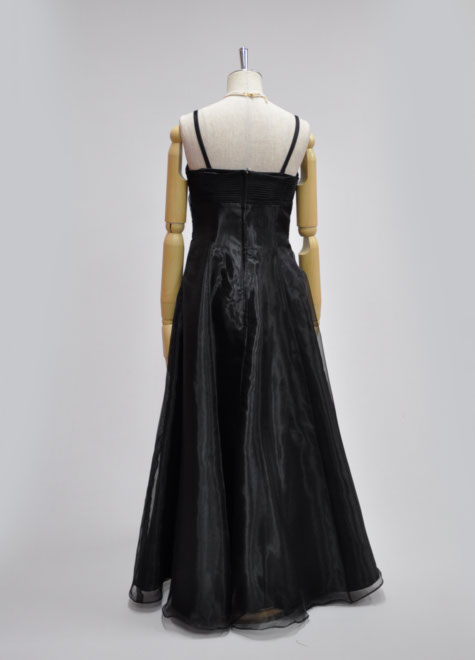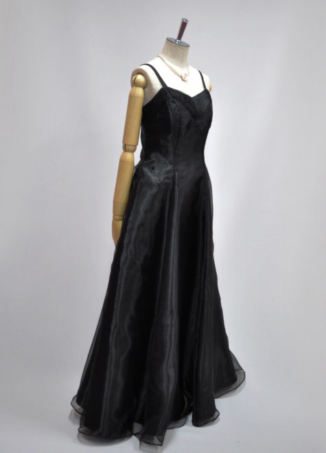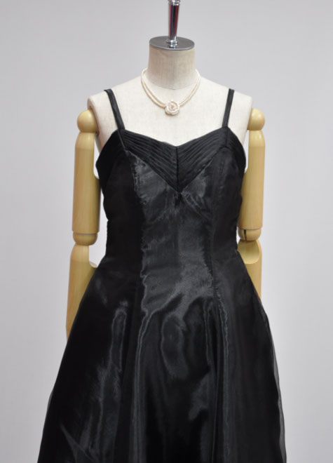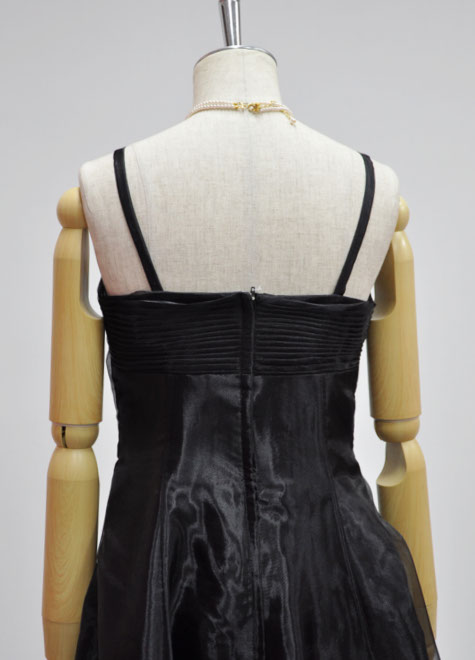 黒は黒でも華やかな印象になるオーガンジー素材。パニエ無しでもフンワリしたシルエットがドレスらしいですよね?襟元は直線的なデザインでシャープな印象に。可愛いイメージの小柄な女性をかっこよく演出します♪