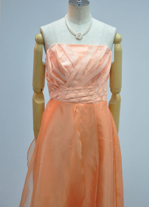 オレンジシャーベットのキュートなお色が可愛いビスチェドレス。小柄な方向けにウエストラインも調整済みですのでオーダードレスのようにしっくりくるはずです!