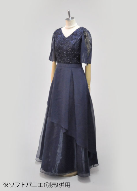 お写真の様にソフトパニエを合わせたふんわりシルエットがおすすめです。