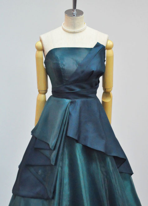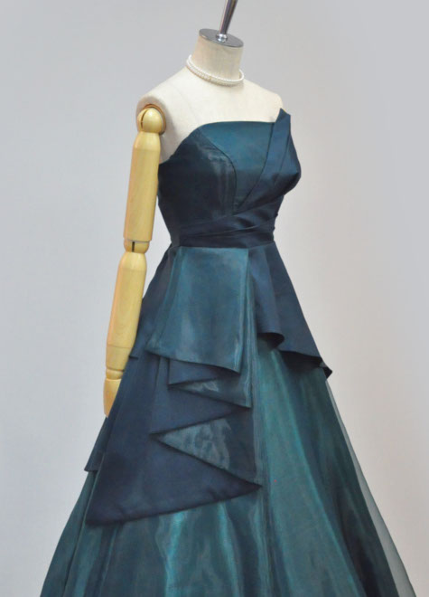 マットサテンとオーガンジーを組み合わせたワントーンドレス