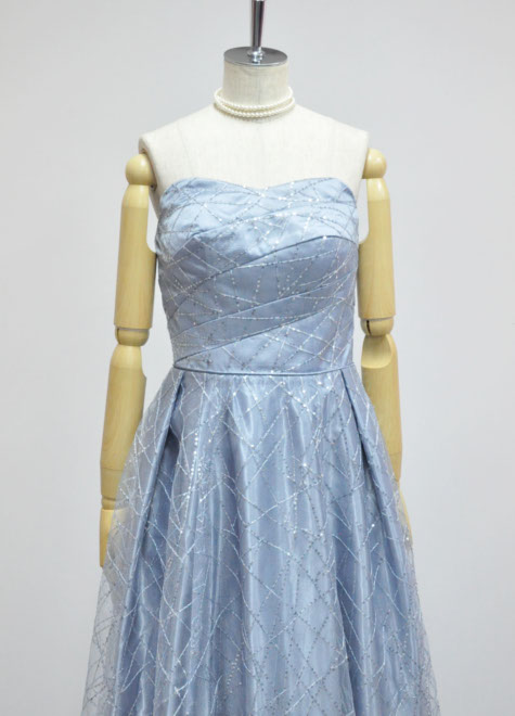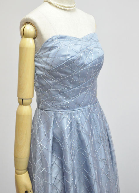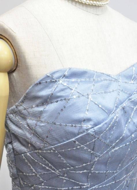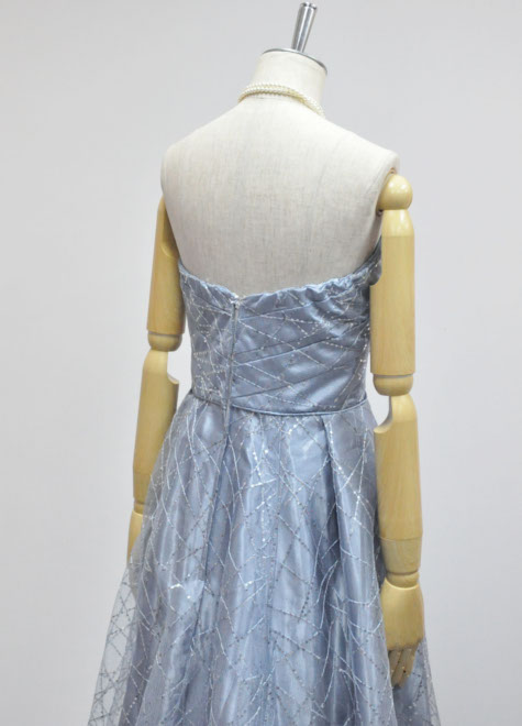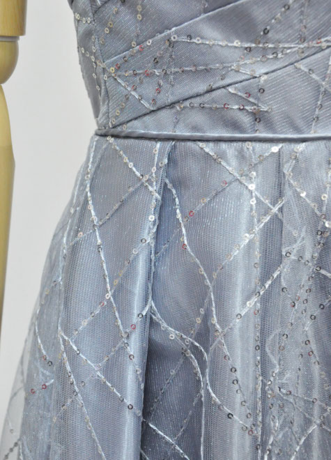 スパンコールチュールを全面に使用した豪華だけど繊細な一着。