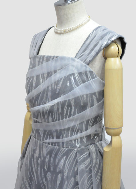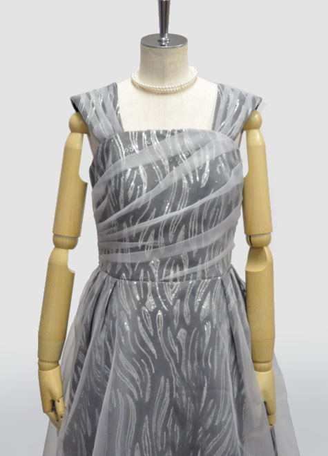 こちらのお色は、シルバーとブラックのスパンコールチュールにグレーのオーガンジーを重ねており、全体的にはグレーの印象。