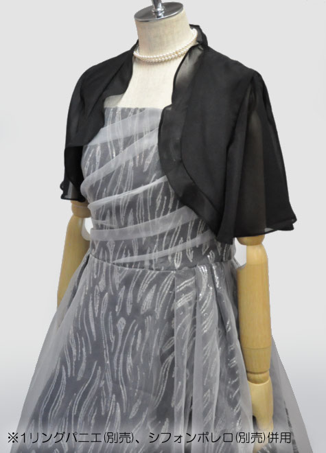 主張の強いドレスは小物を合わせにくかったりしますが、デザイン自体がシンプルなためボレロやコサージュとの相性もいいです。ボレロ併用イメージは詳細画像の後半をご覧ください。