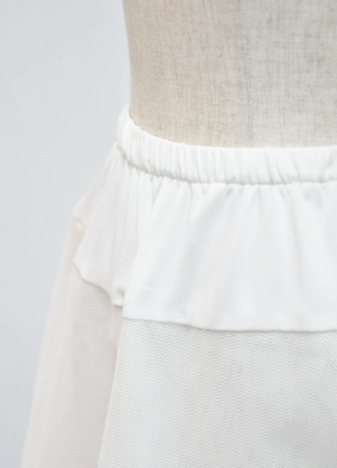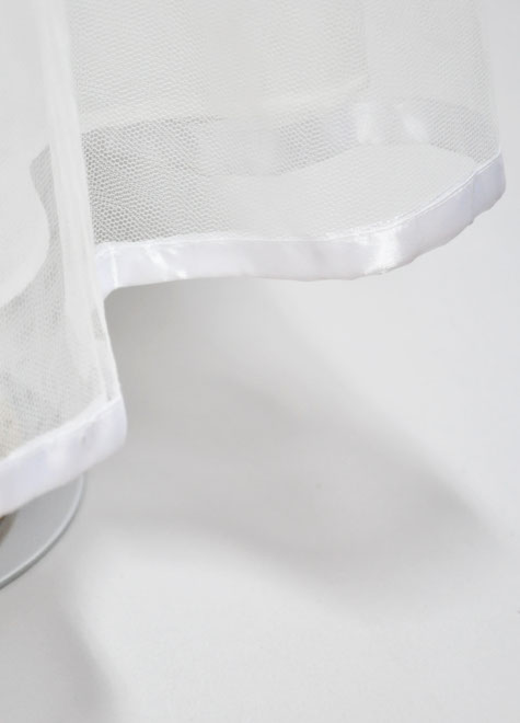 シルエットの変化はわずかですが、足首付近の生地に張りを出し、さり気ない広がりが素敵です。ワイヤーのない軽いパニエですので、合わせるドレスも材質、分量共に軽いものがお勧めです。