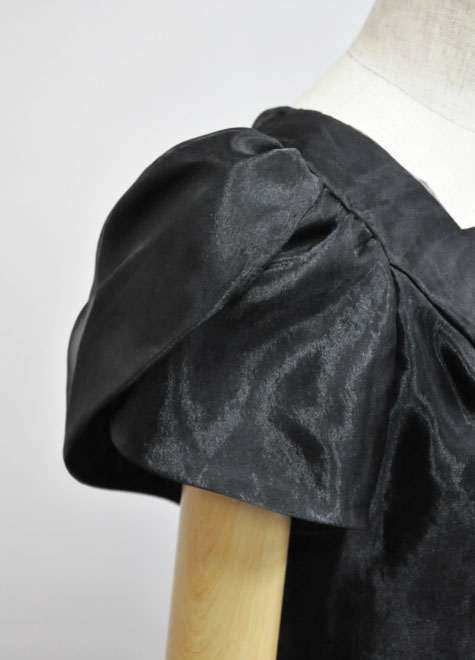 丸みのあるお袖が可愛いオーガンジーブラウス。光沢のある素材が華やかです。サイズはSサイズのみ。アジアートのドレスサイズであれば7~9号の方にお勧めです。お色はブラックのみ。