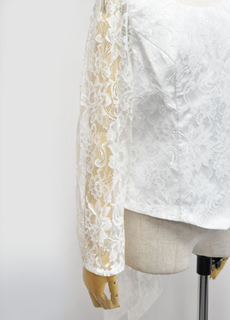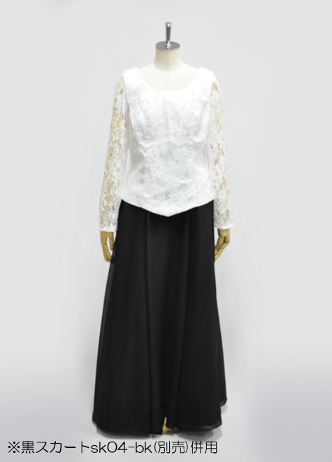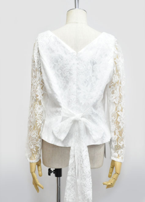 レースが華やかな長袖ブラウス。柔らかい素材で動きやすさも問題ございません。