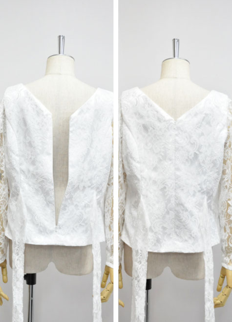 お色はブラックの他、ホワイトとオフホワイトがございます。お写真では分かりにくいですが、現物を並べるとお色味が異なりますのでグループでのご使用の際はご注意ください。ホワイトは漂泊したような真っ白。オフホワイトはやや黄味がかるイメージですが、どちらも「白ブラウス」としてお使いいただけます。