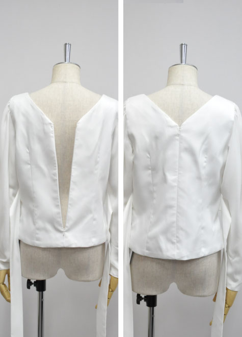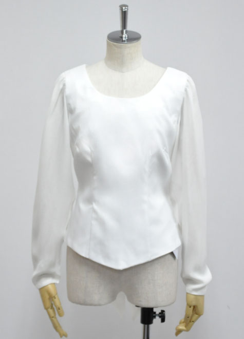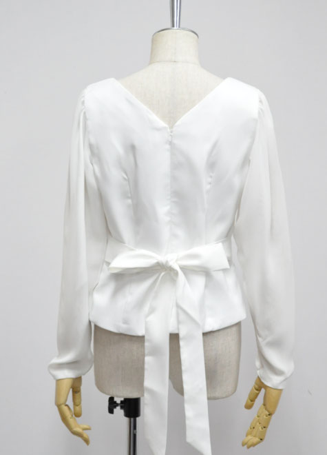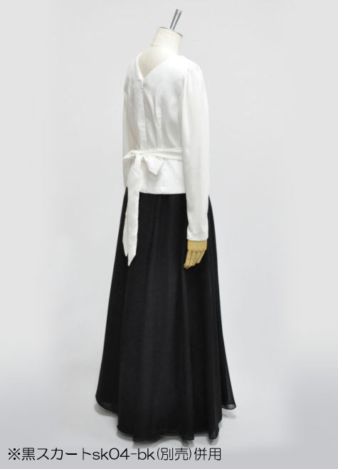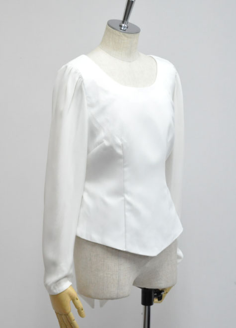 手首まで隠れるプレーンな長袖ブラウス。お色違いにネイビーとブラックをご用意いたしました。