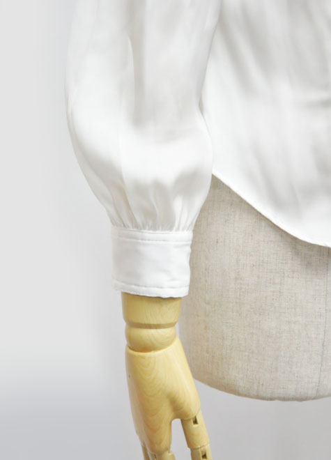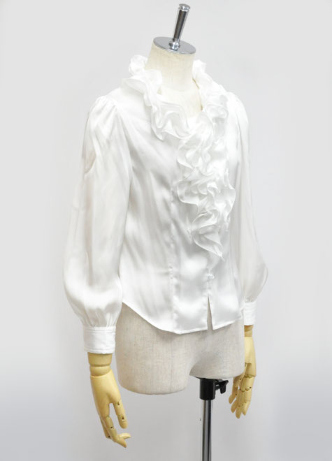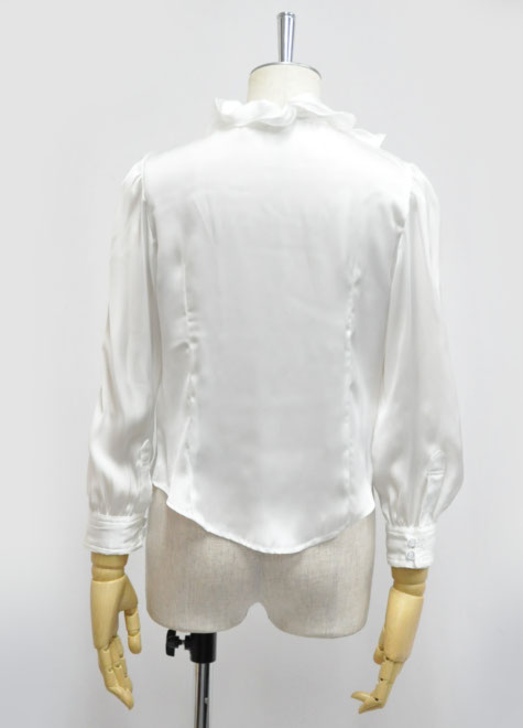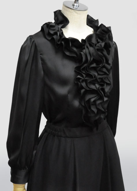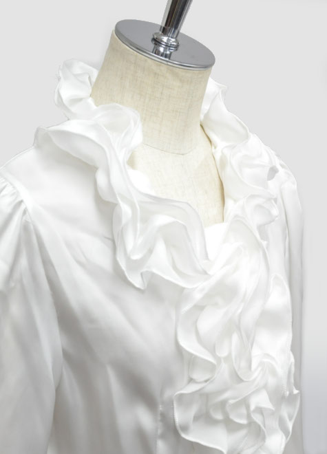 ウエストがシェイプされたシルエットのため、ボリューミーながらスタイルよく見えます。ブラウスの裾をスカートに入れても、フリルの先端が崩れず美しい♪