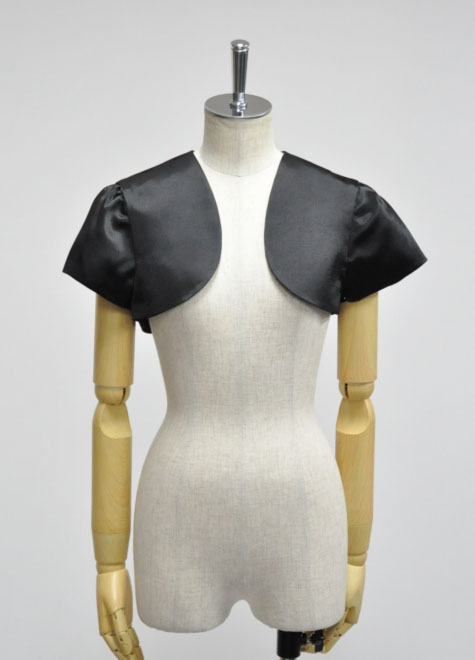とってもコンパクトなサテンボレロ。身頃がほとんどなく、袖を着るようなイメージのためビスチェタイプのドレスと相性がいいです。ドレスのボリューム問わず合わせていただけ、演奏しやすいボリュームが嬉しい!サイズはMサイズのみ。
