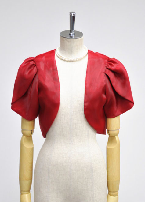 オーガンジーの光沢が華やかで人気!丸みのあるチューリップスリーブがドレスのイメージに可愛らしさを与えます…。