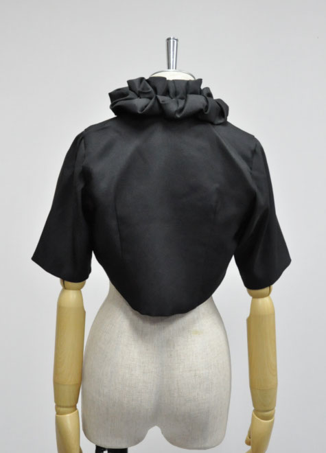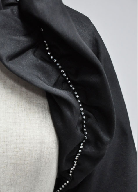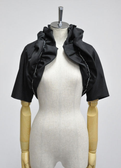 モコモコ襟がお顔回りをゴージャスに演出!シンプルな黒ドレスが一気に華やぎそうなアイテムです。素材は適度な張り感のあるマットサテン。モコモコの中央にはラインストーンが輝きます。サイズはS、M、Lがございます。