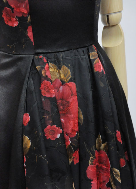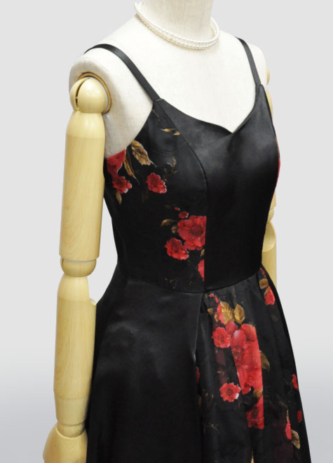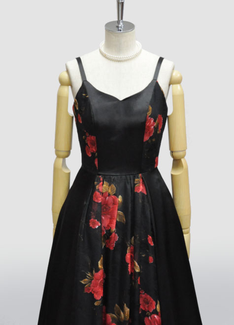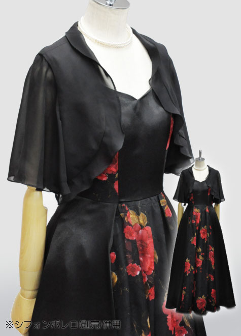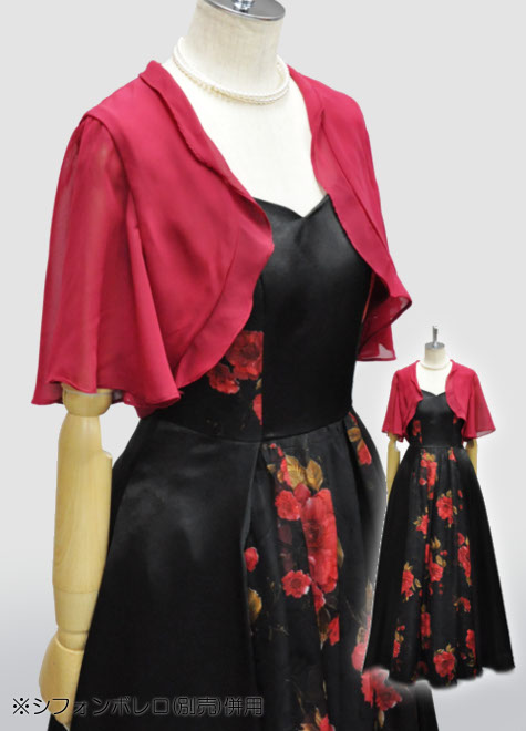 赤×黒の配色を上手に生かし、ボレロなどの小物をアレンジなさってください。ドレス本体にチュール層を縫い込んだ構造ですので、単体でもお写真のようにフンワリします。