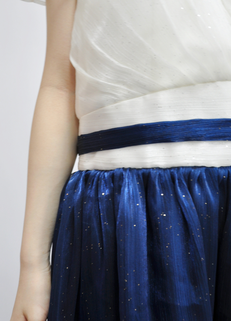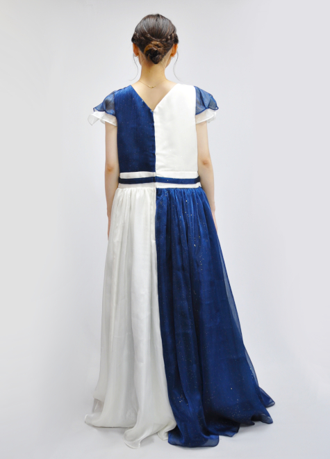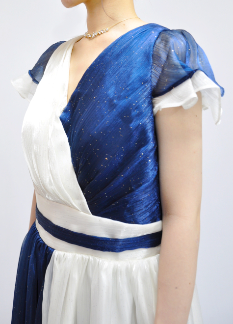 シフォンの軽やかさと生地のラメがキラキラと舞台映えし、