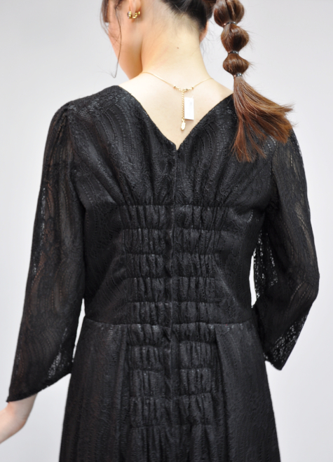 お袖が手首まであり、背中もあまり見せないデザインで、