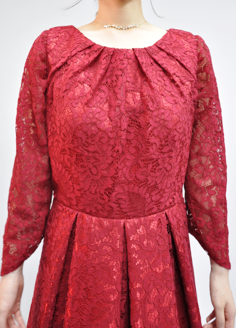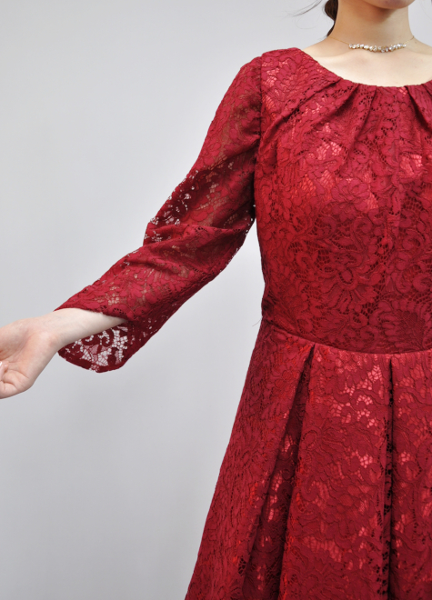 全身総レースの保守的ドレス。
