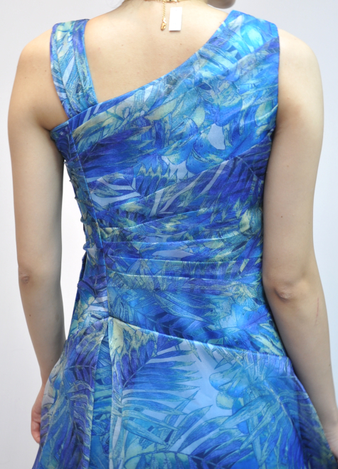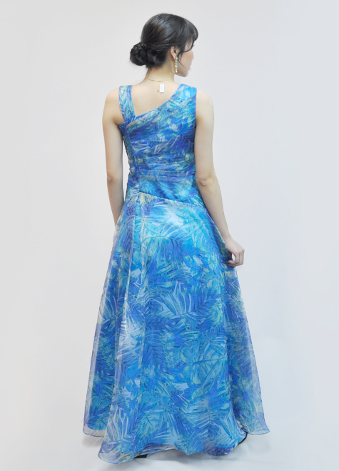ロイヤルブルーカラーをベースに、薄いグリーンがワンポイントカラーとなっているオーガンジードレス。