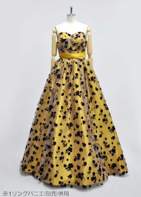 またスカートの内側に、パニエ素材のチュールを取り付けていますので、ドレス単体でもボリューム感があります。