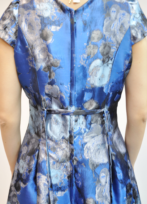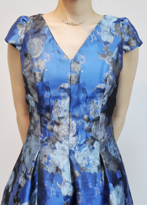 【色のコントラストが美しいプリントジャガードドレス】