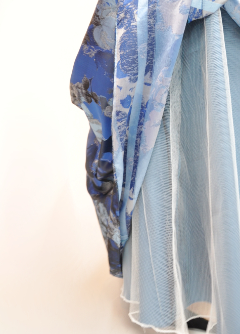 裏側にチュールを取り付けておりますので、パニエを使用しなくてもスカートの形が保たれます。