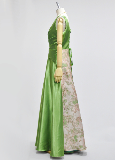 アジアートが得意とする異なる生地をミックスさせたドレス。