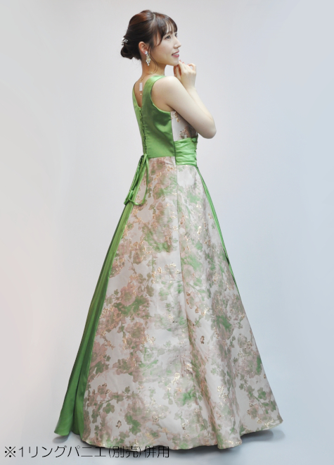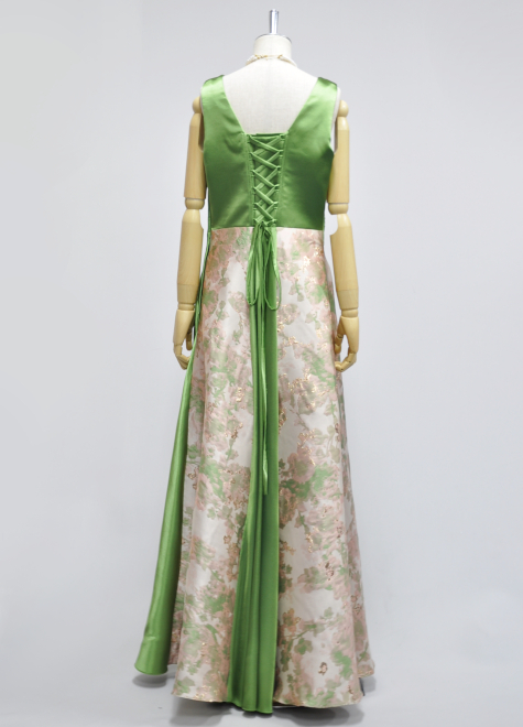 光沢感が特徴的なサテン生地にグリーンを選択することで、主役でありながらおしとやかな雰囲気にまとまりました。