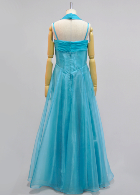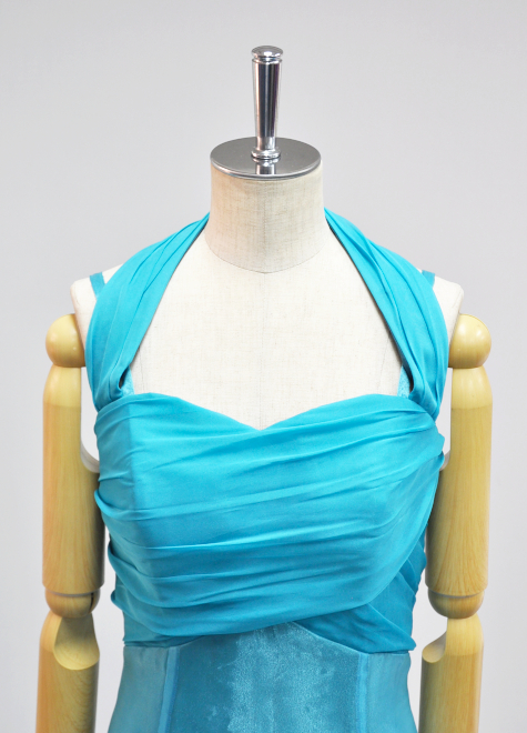 パッと明るい水色が全体に広がり、一目ですらっとした印象を与えるオーガンジードレスです。