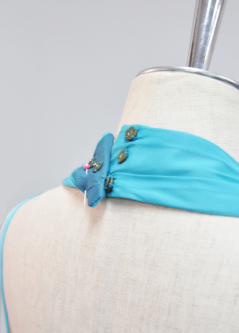 ホルターネックはボタンで留められるので、一人でも形を保ったまま綺麗に着ることが出来ます。(画像7枚目参照)