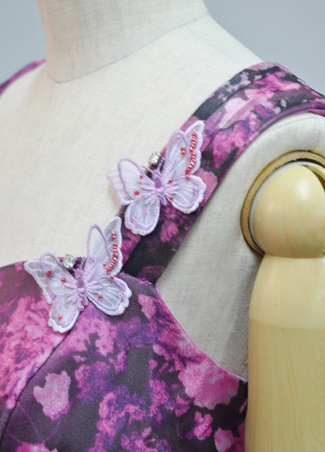 蝶々のデザインは右サイドの肩紐に変更可能。無料で変更させていただきます。