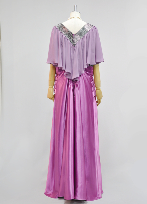 紫の薔薇には生地の表面に少し手刺繍を施し、舞台上では光の反射で控えめにキラッと主張します。