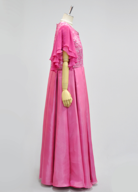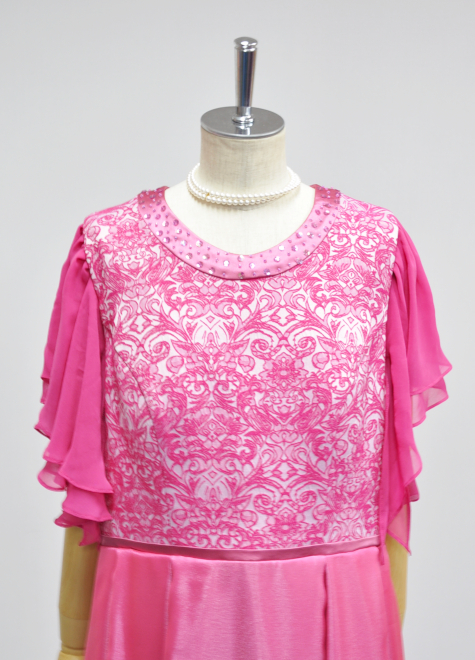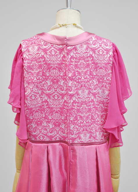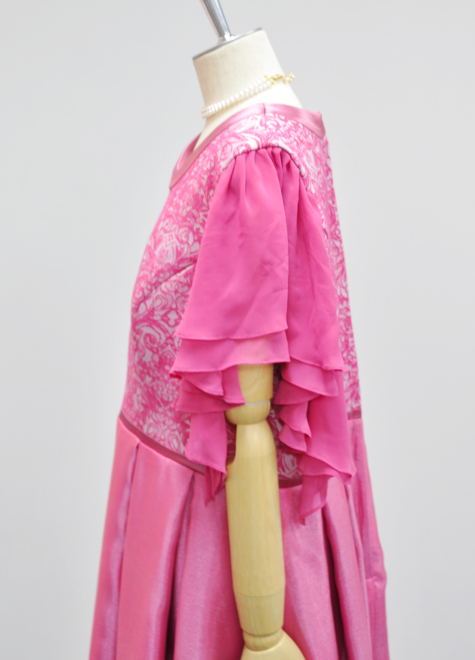 上半身はレース生地と袖にシフォン生地を使用し、ふわりとしたエアリーな感じが特徴的です。
