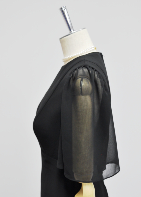 バストにボリュームがある方もすっきりまとまりやすい黒ドレスです。ぜひ一度お試しください。