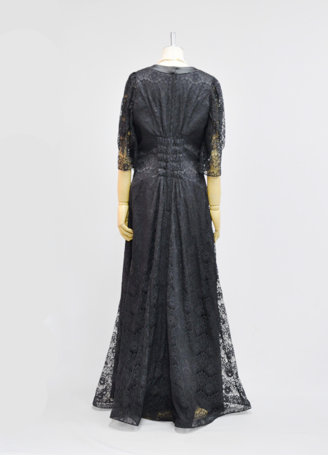 全身に黒レース生地を使用することで黒ドレスの中でも華やかと華奢さを感じられるドレスになりました。