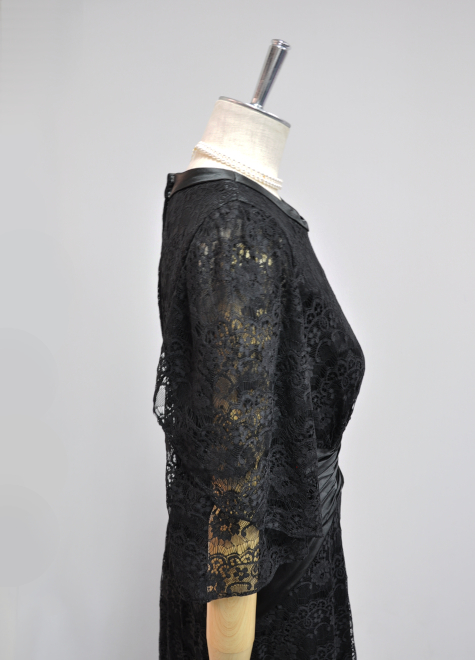 お袖はレース生地を二重にすることで二の腕のカバー力を高め、カーブを利かせながら被せた二枚目のレースが変化をつけてくれています。