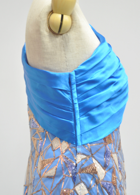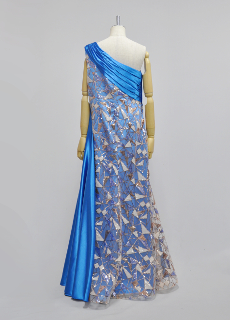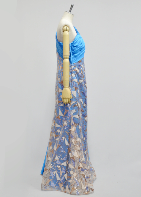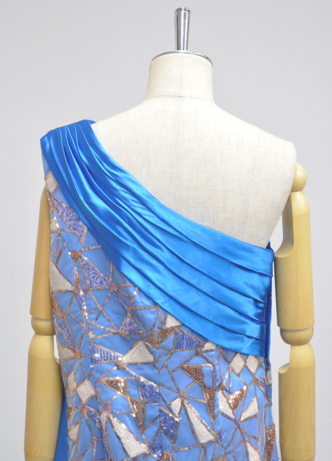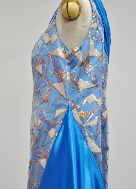 ホワイト、ゴールド、ブルーのスパンコールが幾何学模様っぽく、