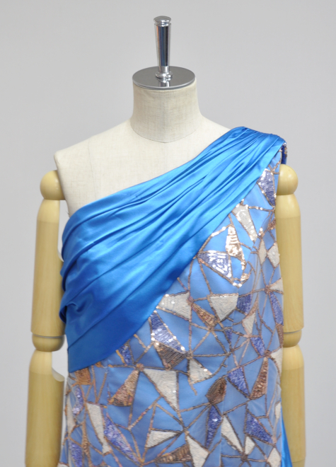 ぐるっと一周させることでスパンコールチュールと一体感を生み出しました。