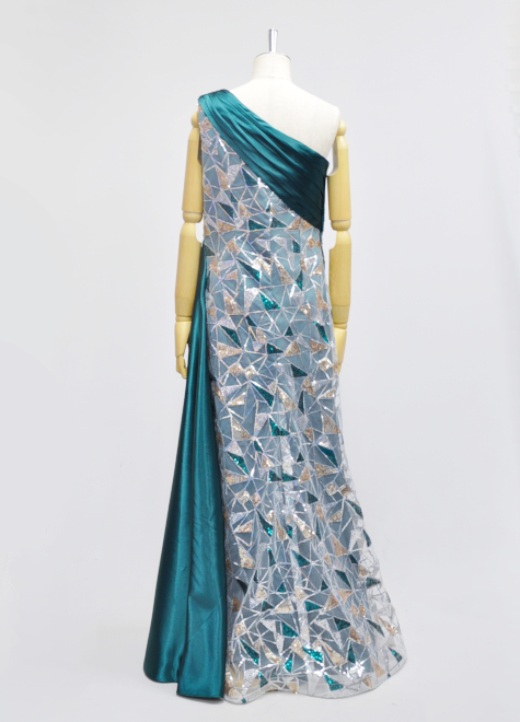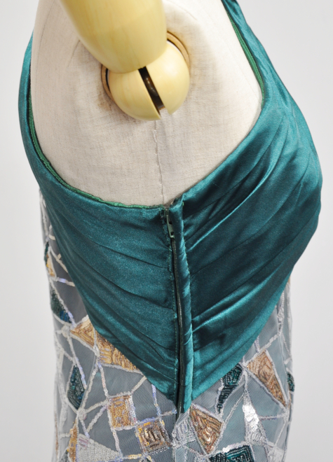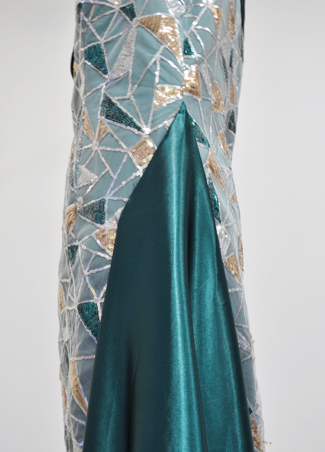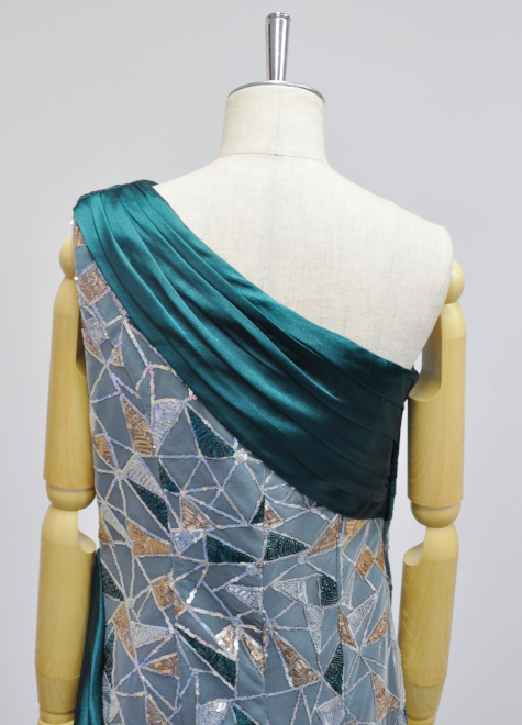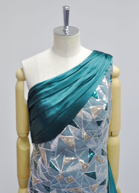 ホワイト、ゴールド、ブルーのスパンコールが幾何学模様っぽく、