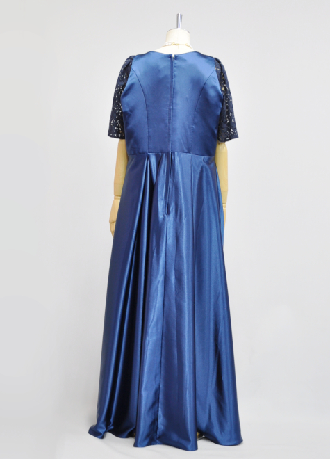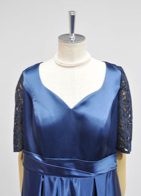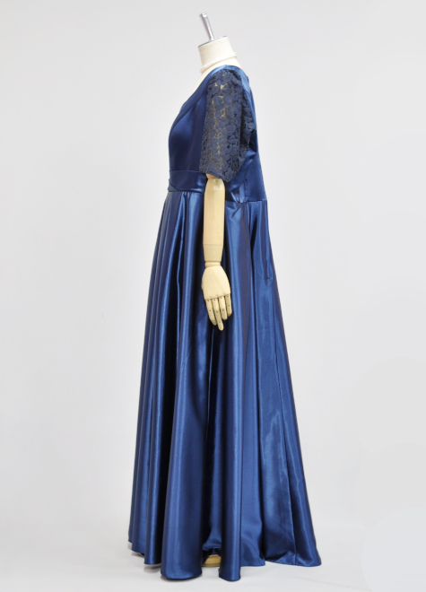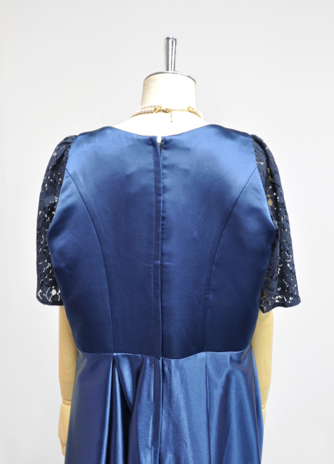 落ち着いた紺色のドレスながら、細部に小技の利いた優れもの♪